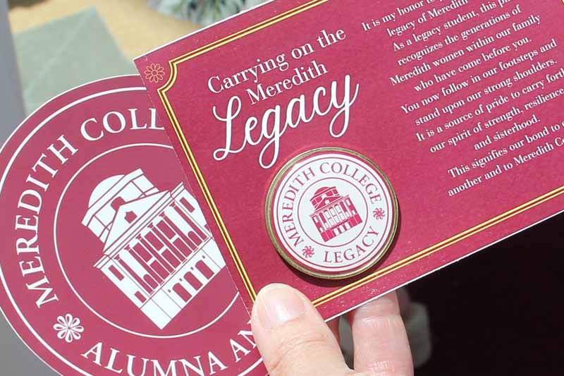 On Move-In Day, Meredith’s Office of Alumnae Relations started a new tradition by hosting a legacy pinning ceremony and reception. The event celebrated students whose mothers or grandmothers attended Meredith. In this first year, all new first-year students and transfer students were invited, as well as current legacy students who are sophomores, juniors, and seniors.